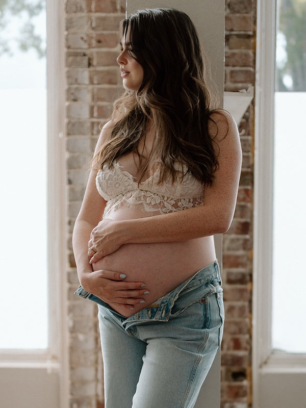 Momyknows White Lace Drawstring Baby Shower Maternity Tank Top