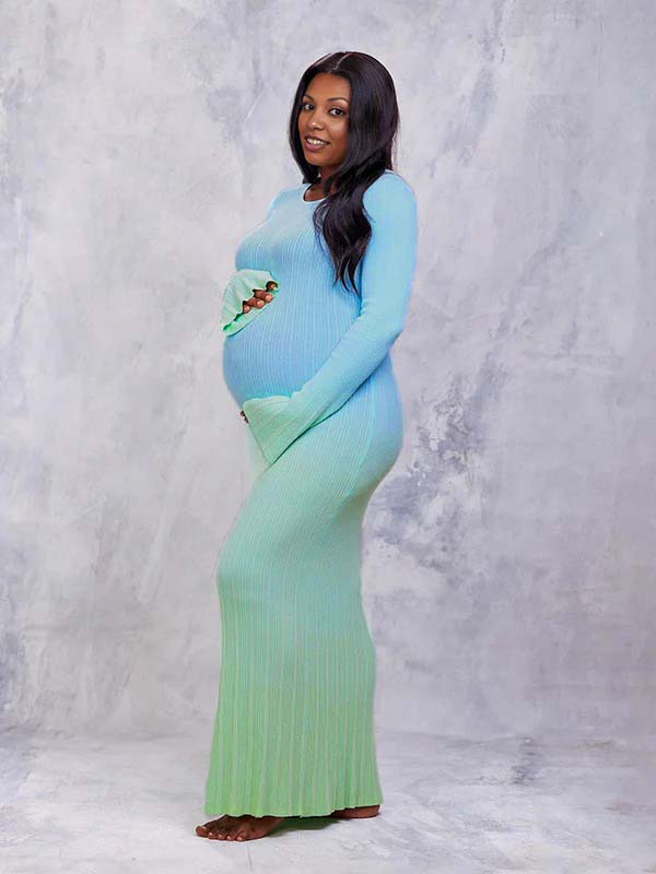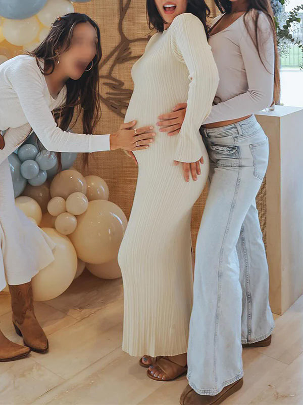 Momyknows Knit Solid Color Elegant Photoshoot Baby Shower Maternity Maxi Sweater Dress
