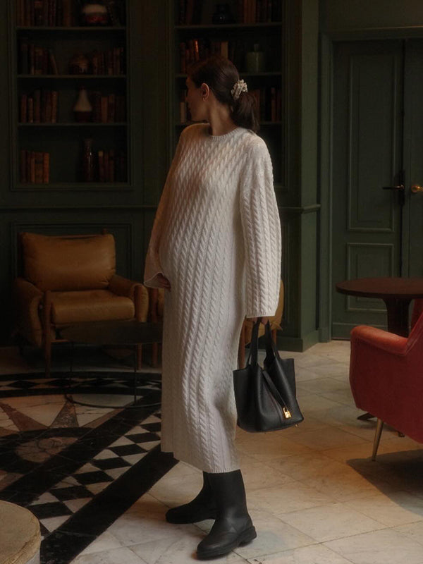 Momyknows White Oversized Cable Knitting Streetwear Mini Maternity Pullover Sweater