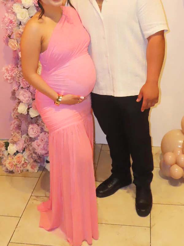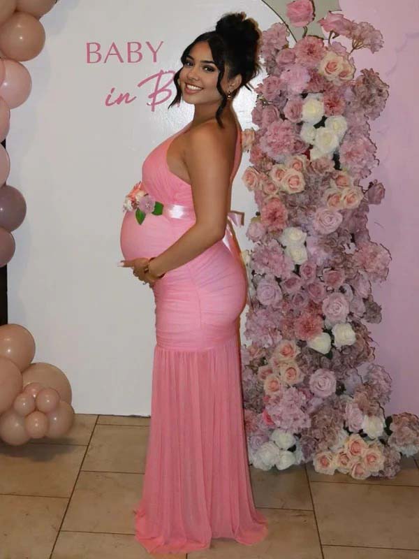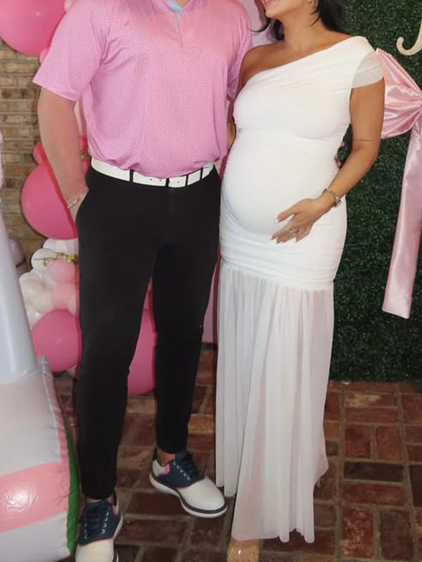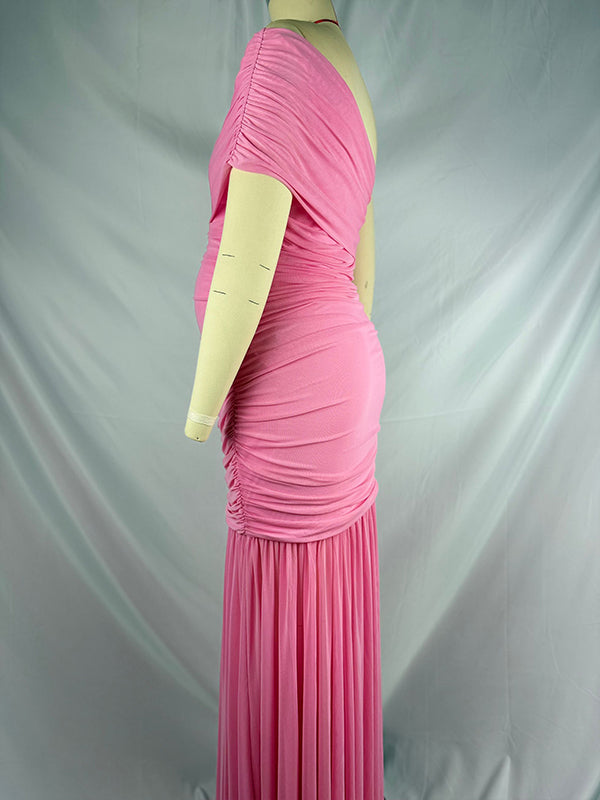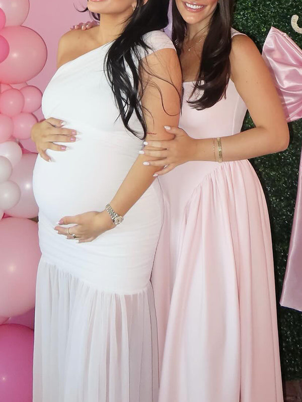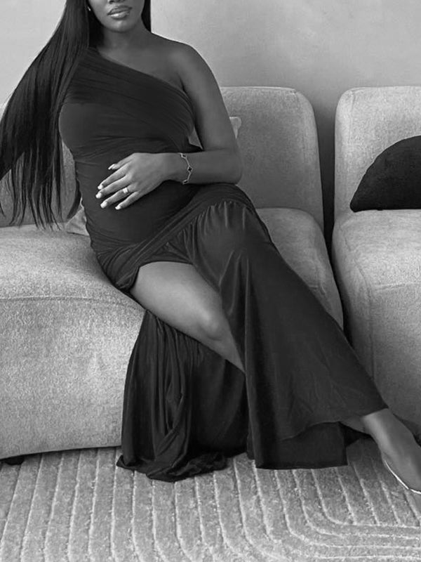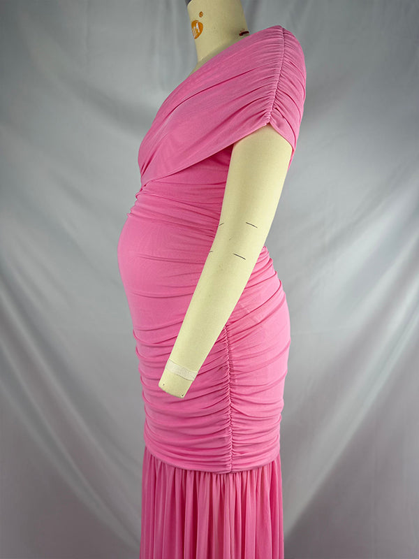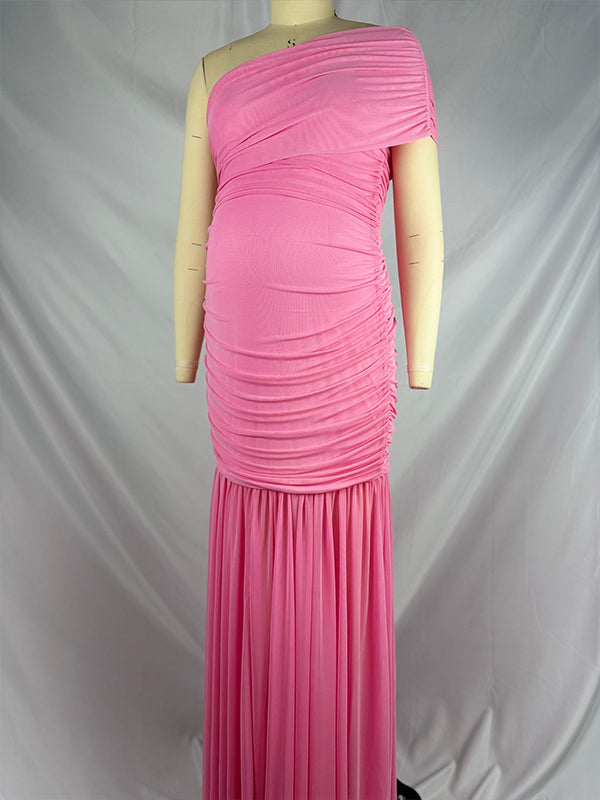 Mesh One Shoulder Ruched Side Slit Mermaid Maternity Maxi Dress