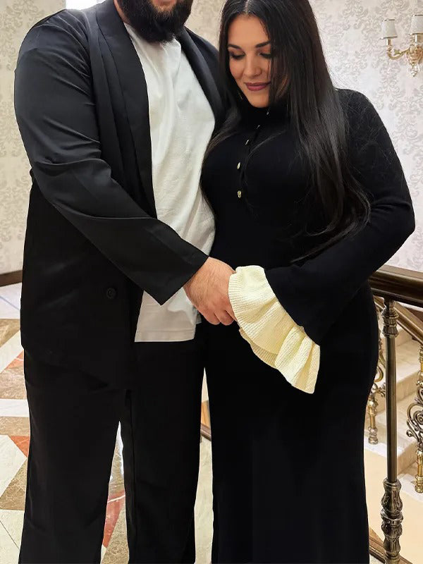 Momyknows Black Buttons Hit Color Photoshoot Maternity Maxi Sweater Dress