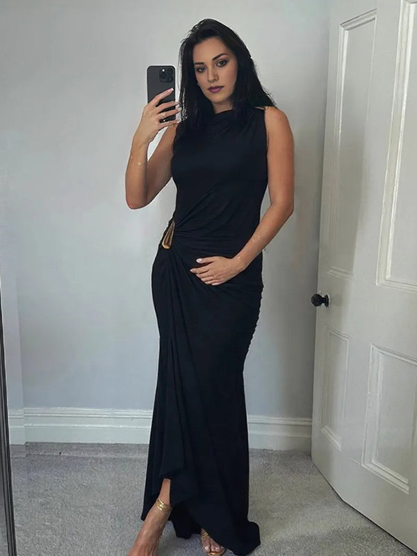 Decoration: Irregular, ruched, twisted, metal buckle, bodycon
