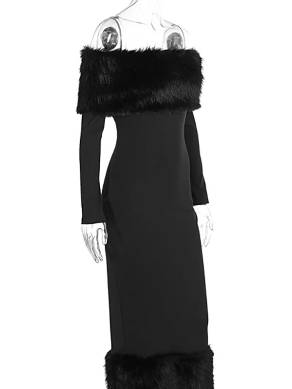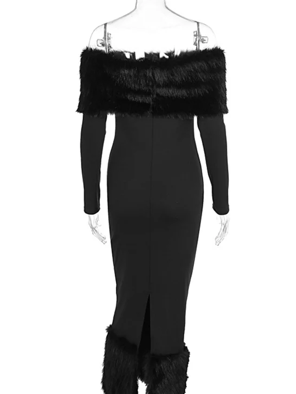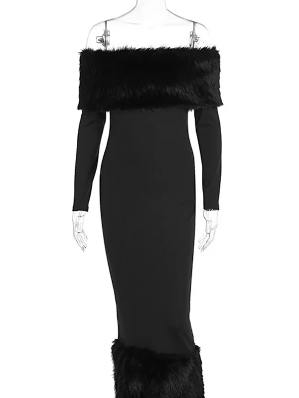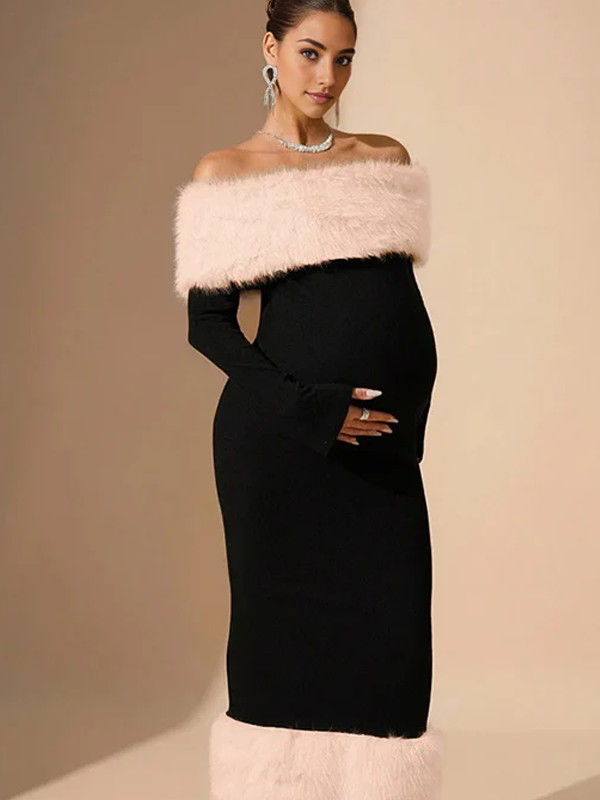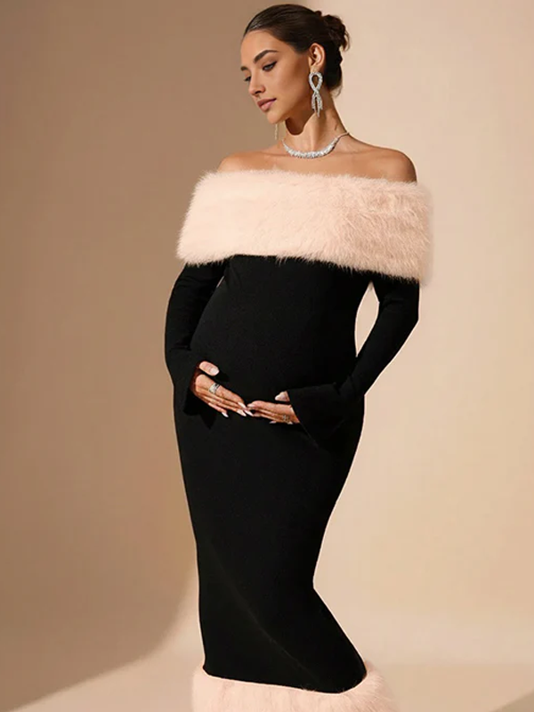 Momyknows Off Shoulder Feather Back Slit Bodycon Maternity Maxi Dress
