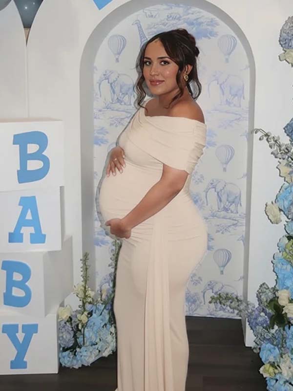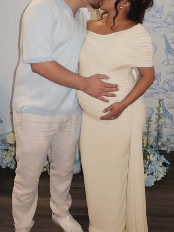 Momyknows Off Shoulder Ruched Draped Bodycon Maternity Maxi Dress