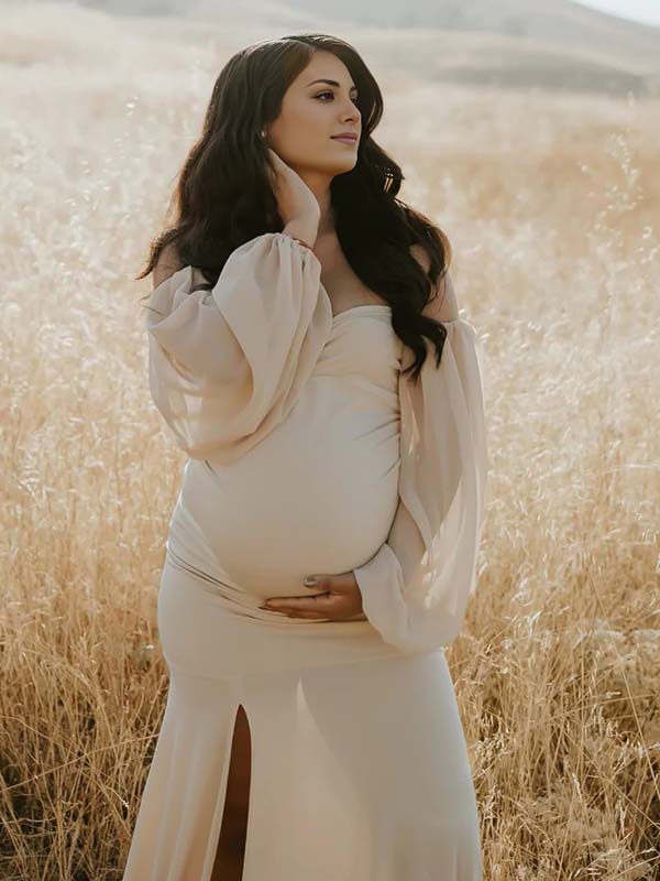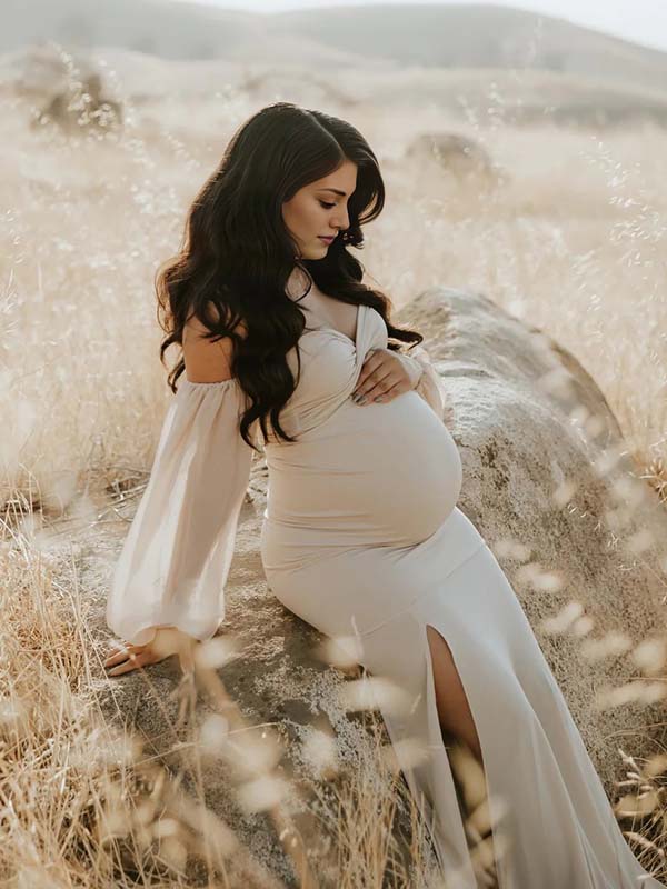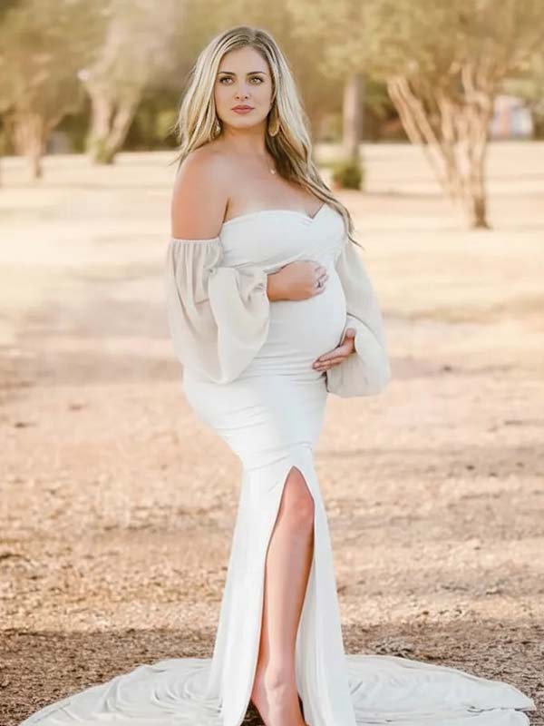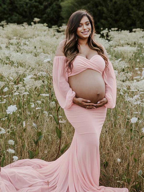 Momyknows Off Shoulder Side Slit Train Crop Multi Way Two Piece Set Boho Maternity Maxi Dress