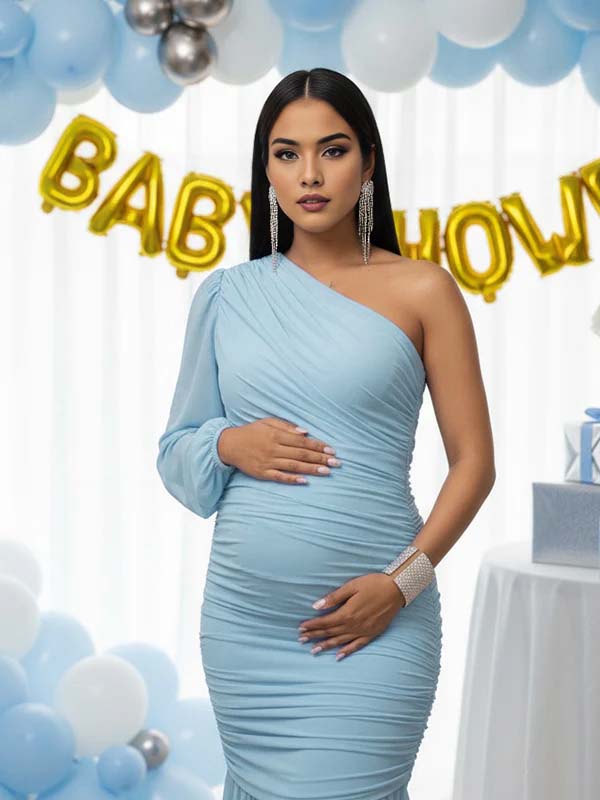 Momyknows One Shoulder Mesh Ruched Mermaid Maternity Maxi Dress