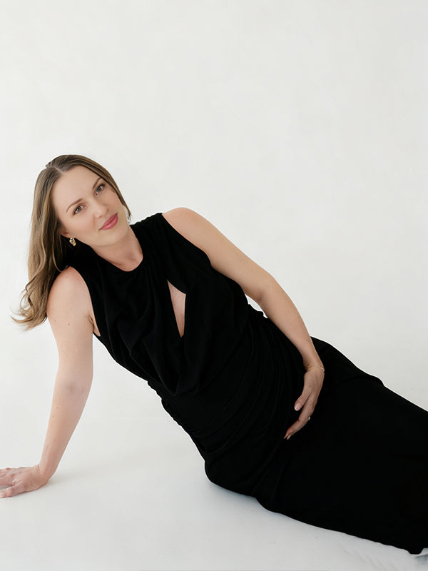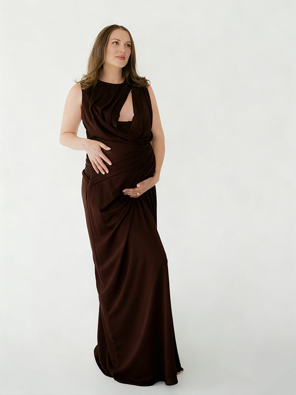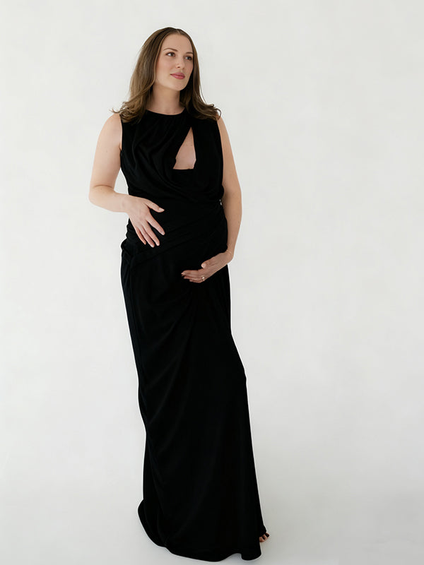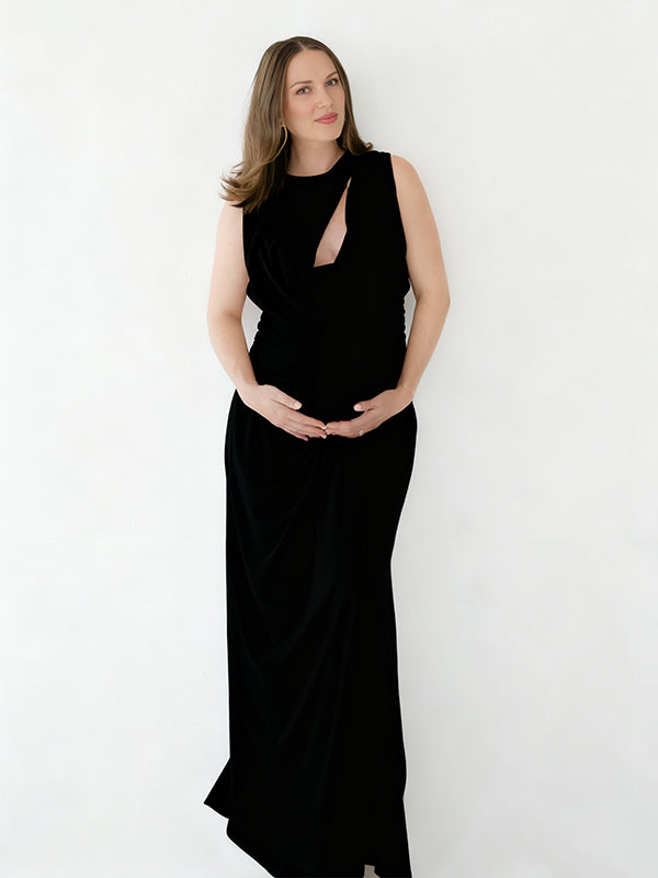 Momyknows Openwork Side Slit Ruched Maternity Photoshoot Maxi Dress