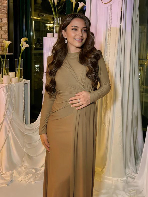 Momyknows Twist Ruched Draped Baby Shower Maternity Maxi Dress