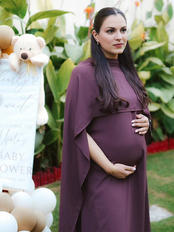 Momyknows Purple Shawl Silk Grenadine Baby Shower Maternity Maxi Dress