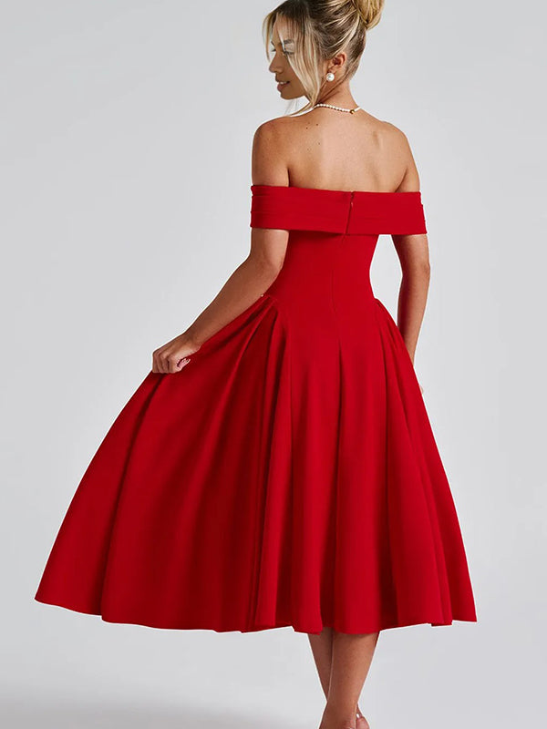 Momyknows Off Shoulder Dropped Waist Voluminous Panels A-line Maternity Maxi Dress