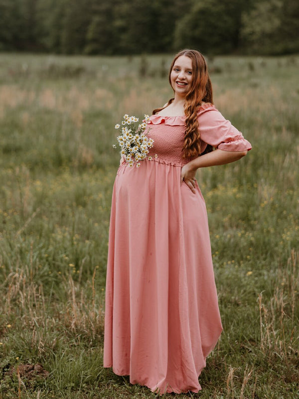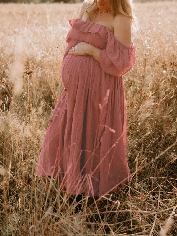 Momyknows Pink Boho Flowy Bump Friendly Off Shoulder Photoshoots Maxi Dress