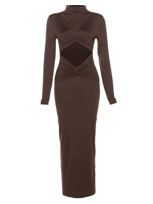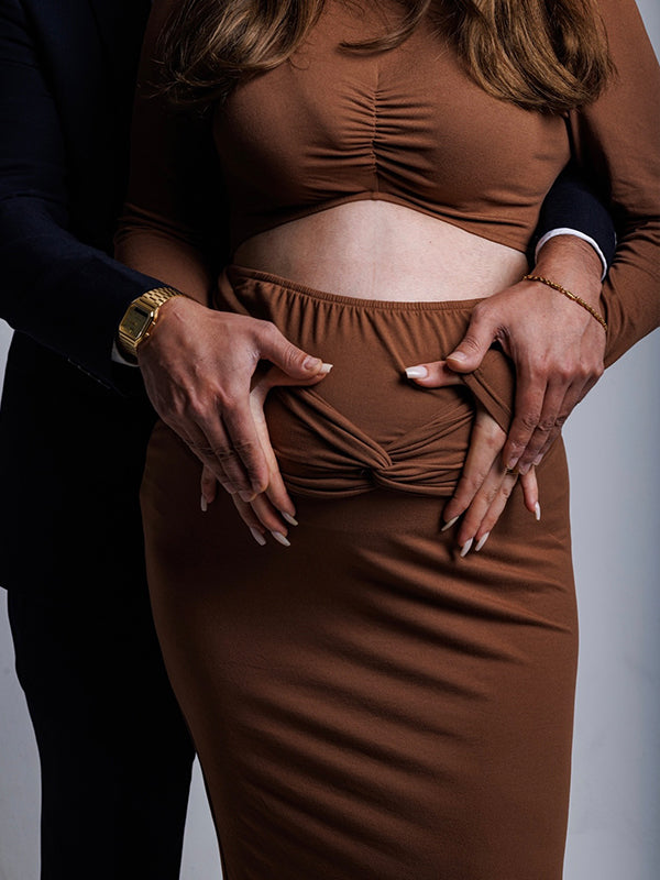 Momyknows Brown Ruched Cut Out Crop Maternity Maxi Dress