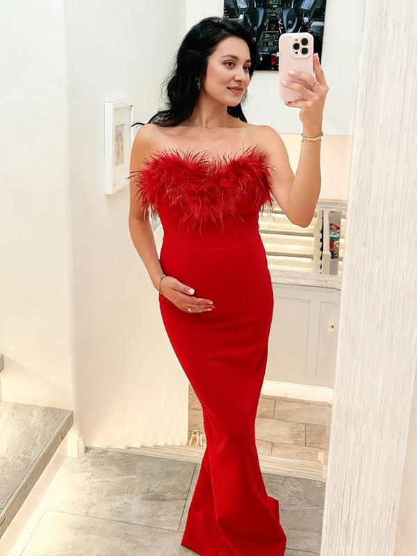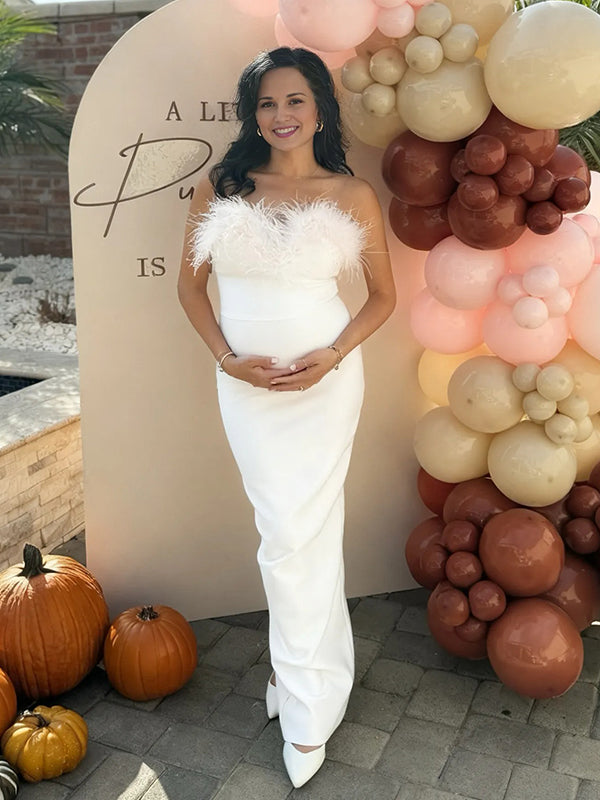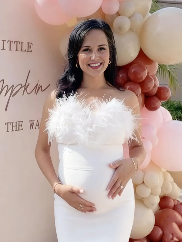 Momyknows Fluffy Zipper Open Back Maternity Baby Shower Maxi Dress
