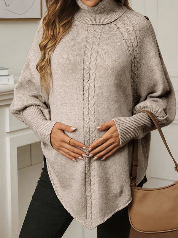 Momyknows Khaki Fashion Striped Crochet Buttons Bat Wing Maternity Sweater Photoshoot Top