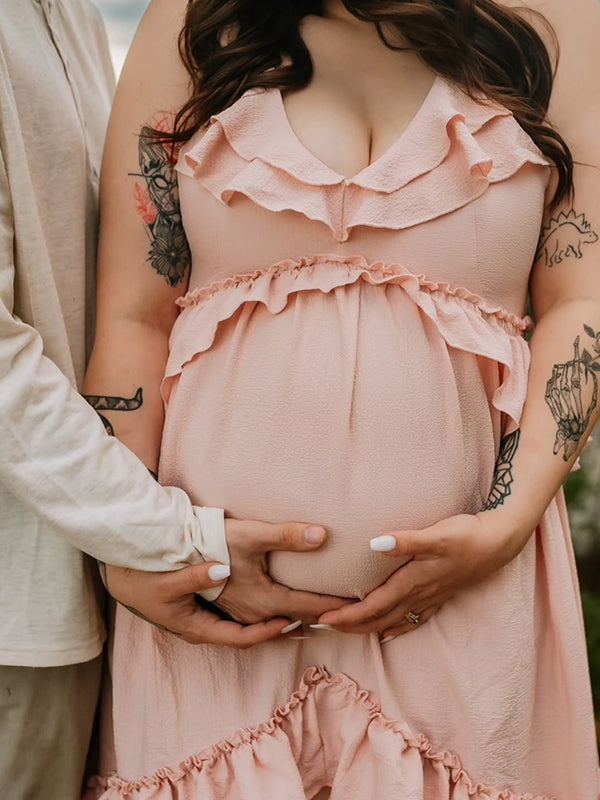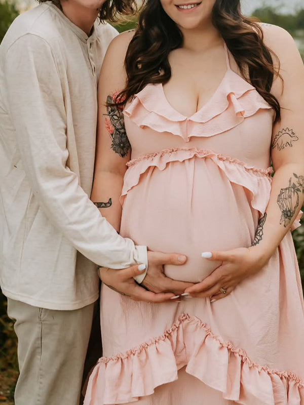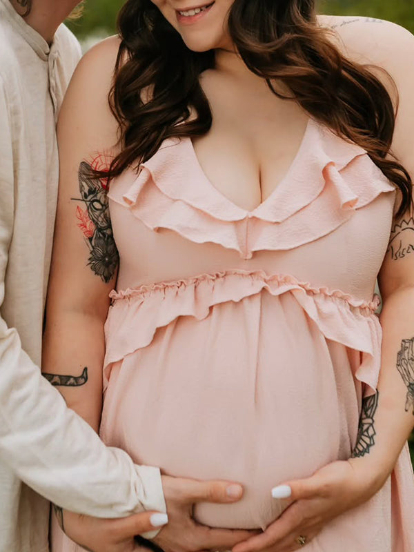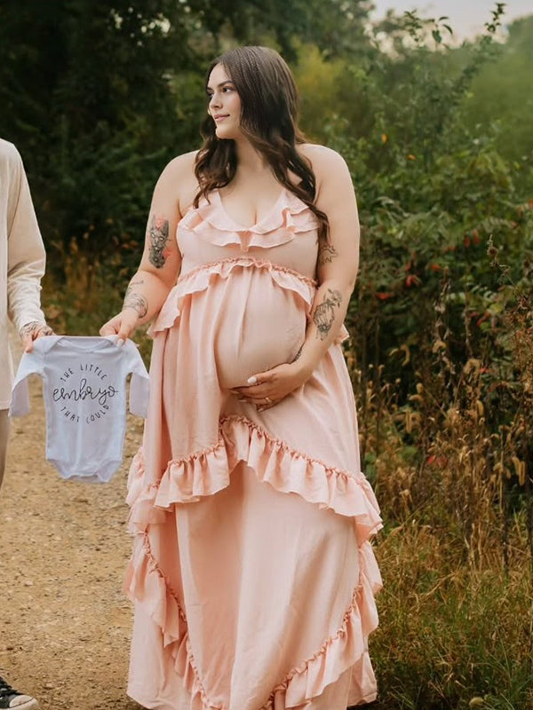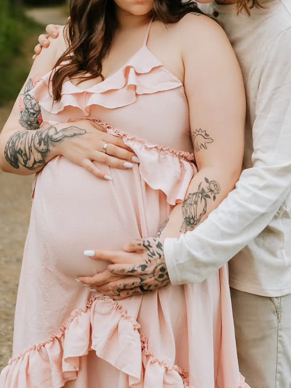 Momyknows Pink Ruffle Backless Cami Big Swing Boho Maternity Maxi Dress
