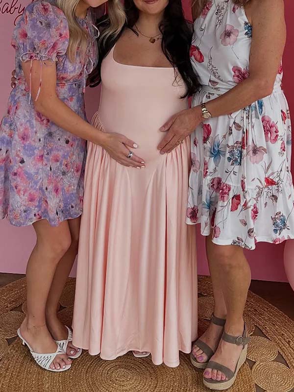 Momyknows Pink Tank Drop Waist Big Swing Elegant Maternity Maxi Dress