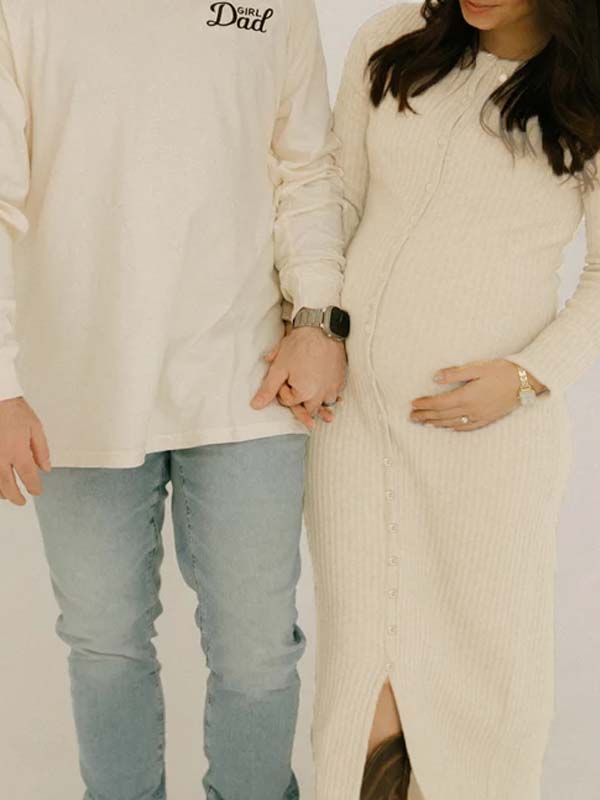 Momyknows Rice White Single Breasted Tache Side Slit Maternity Photoshoot Sweater Maxi Dress