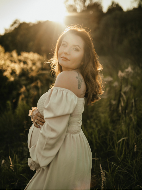 Waist:Measure around the natural waistline, which is the narrowest part of your torso, typically above your baby bump.