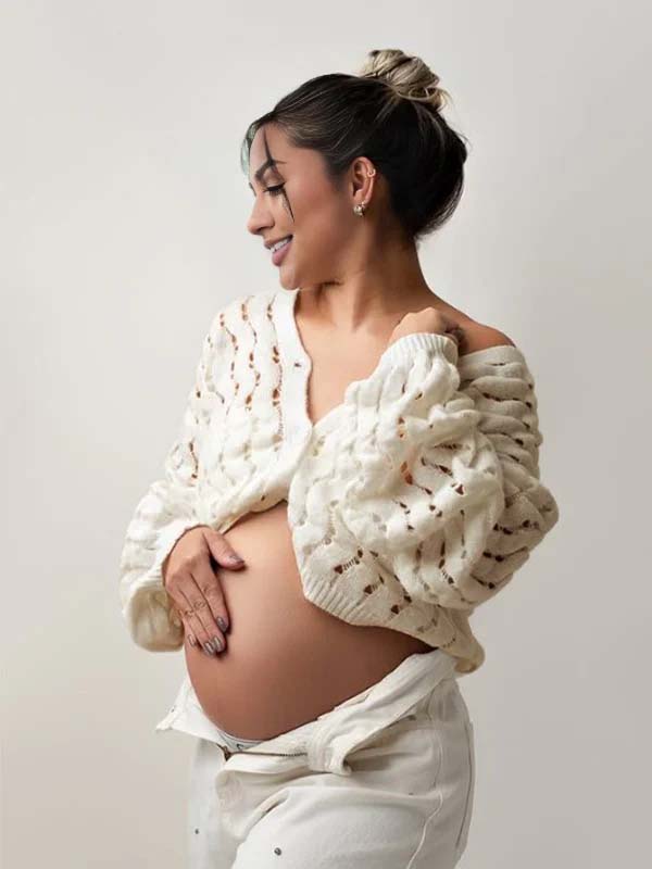 Momyknows White Knitwear Cardigan Single Breasted Photoshoot Maternity Top